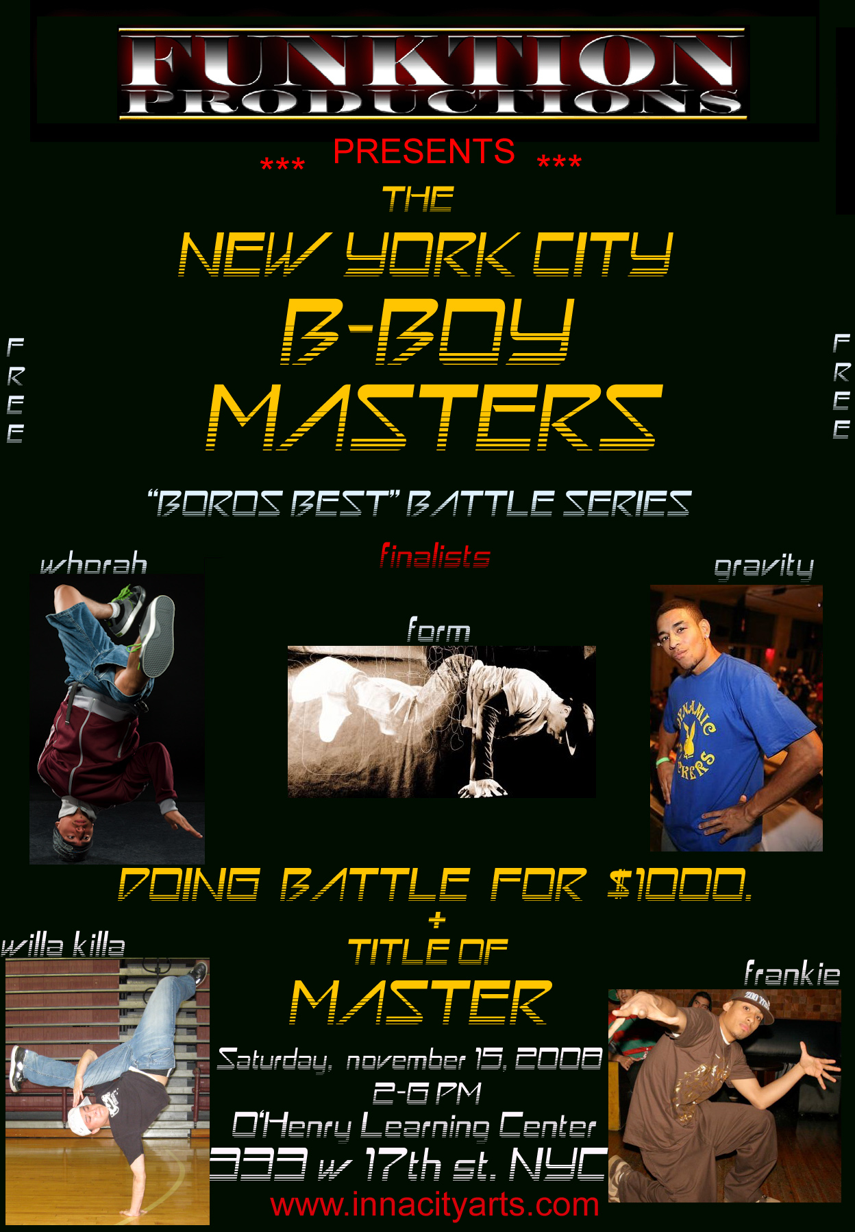 THE PURPOSE: OF THE BBOY MASTERS BATTLE SERIES IS TO PROVIDE PROFESSIONAL ORGANIZATION TO THE ART FORM.